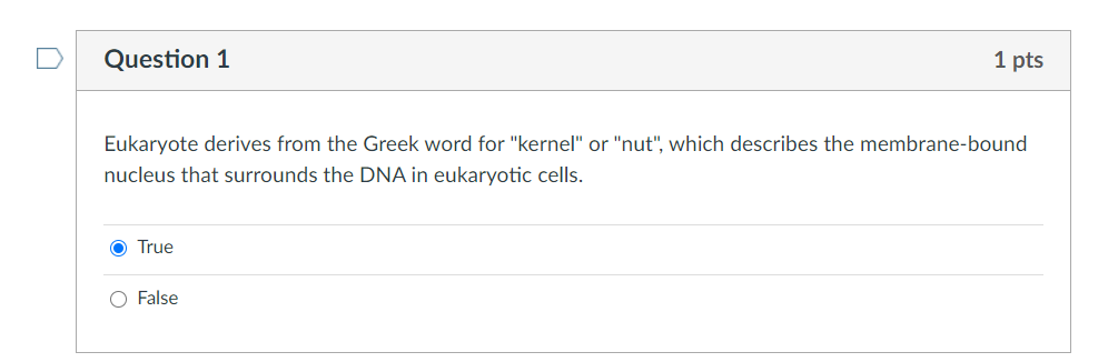Solved Question 1 1 pts Eukaryote derives from the Greek Chegg com