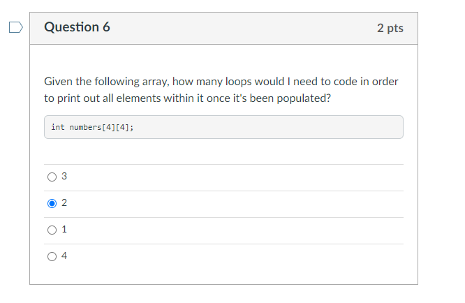 Solved Question 6 2 pts Given the following array how many Chegg com