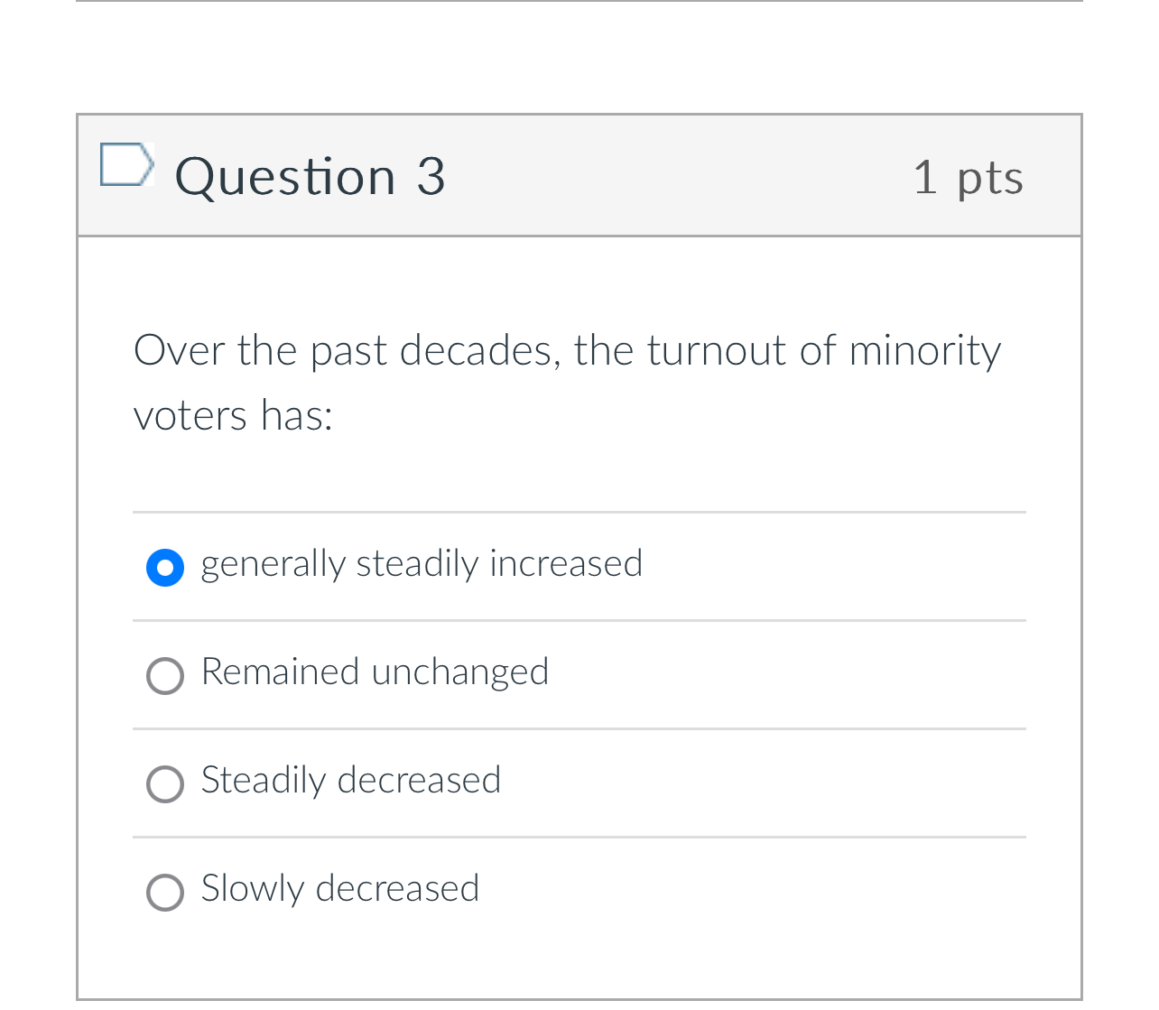 Solved Question 31ptsOver the past decades the turnout of Chegg com