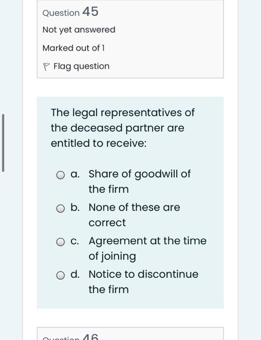 Solved Question 41 Not yet answered Marked out of 1 P Flag Chegg com