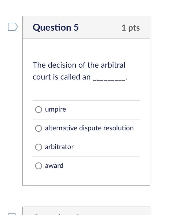 Solved Question 5 1 pts The decision of the arbitral court Chegg com