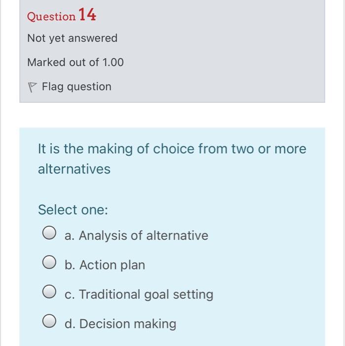 Solved Question 14 Not yet answered Marked out of 1 00 Flag Chegg com