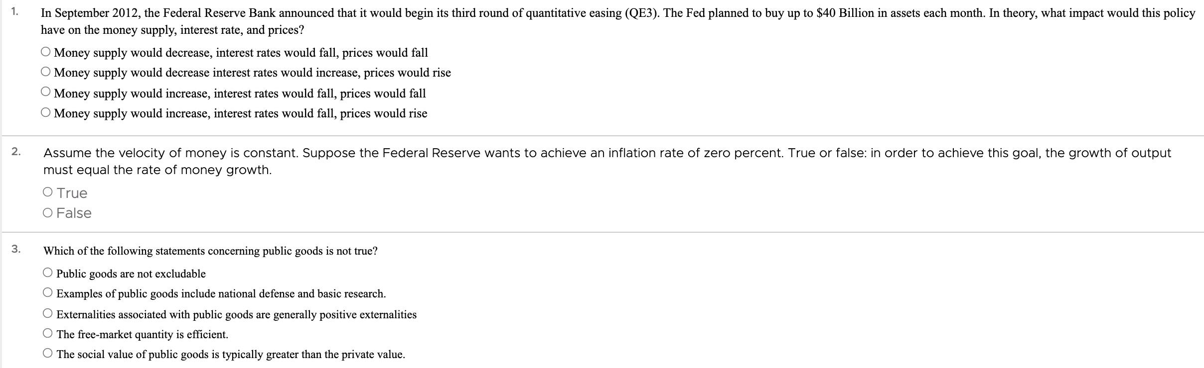 Solved 1 In September 2012 the Federal Reserve Bank Chegg com