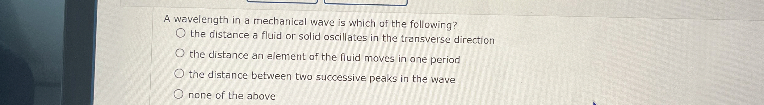 Solved A wavelength in a mechanical wave is which of the Chegg com