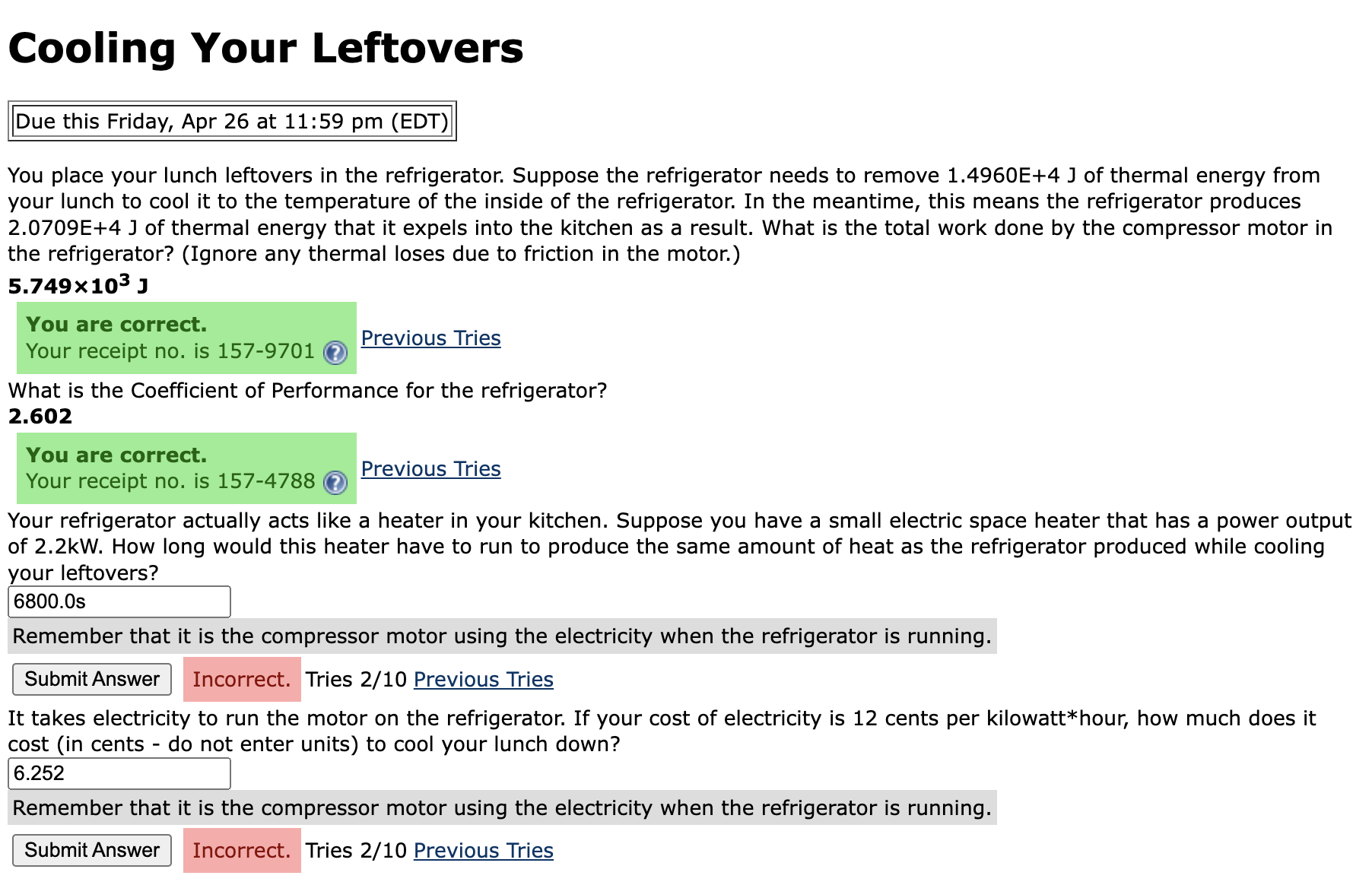Solved Cooling Your LeftoversDue this Friday Apr 26 at Chegg com