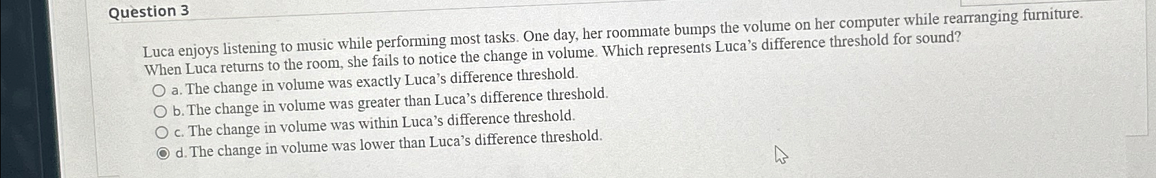 Solved Question 3Luca enjoys listening to music while Chegg com