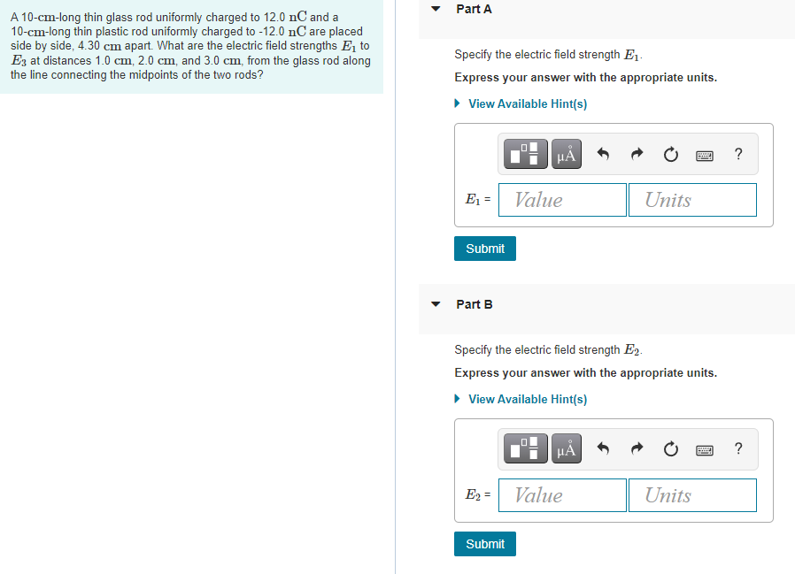 Solved Part A A 10 cm long thin glass rod uniformly charged Chegg com