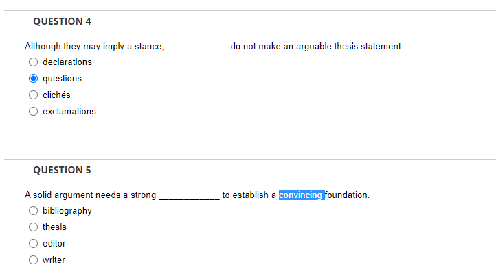 Solved QUESTION 4 do not make an arguable thesis statement Chegg com