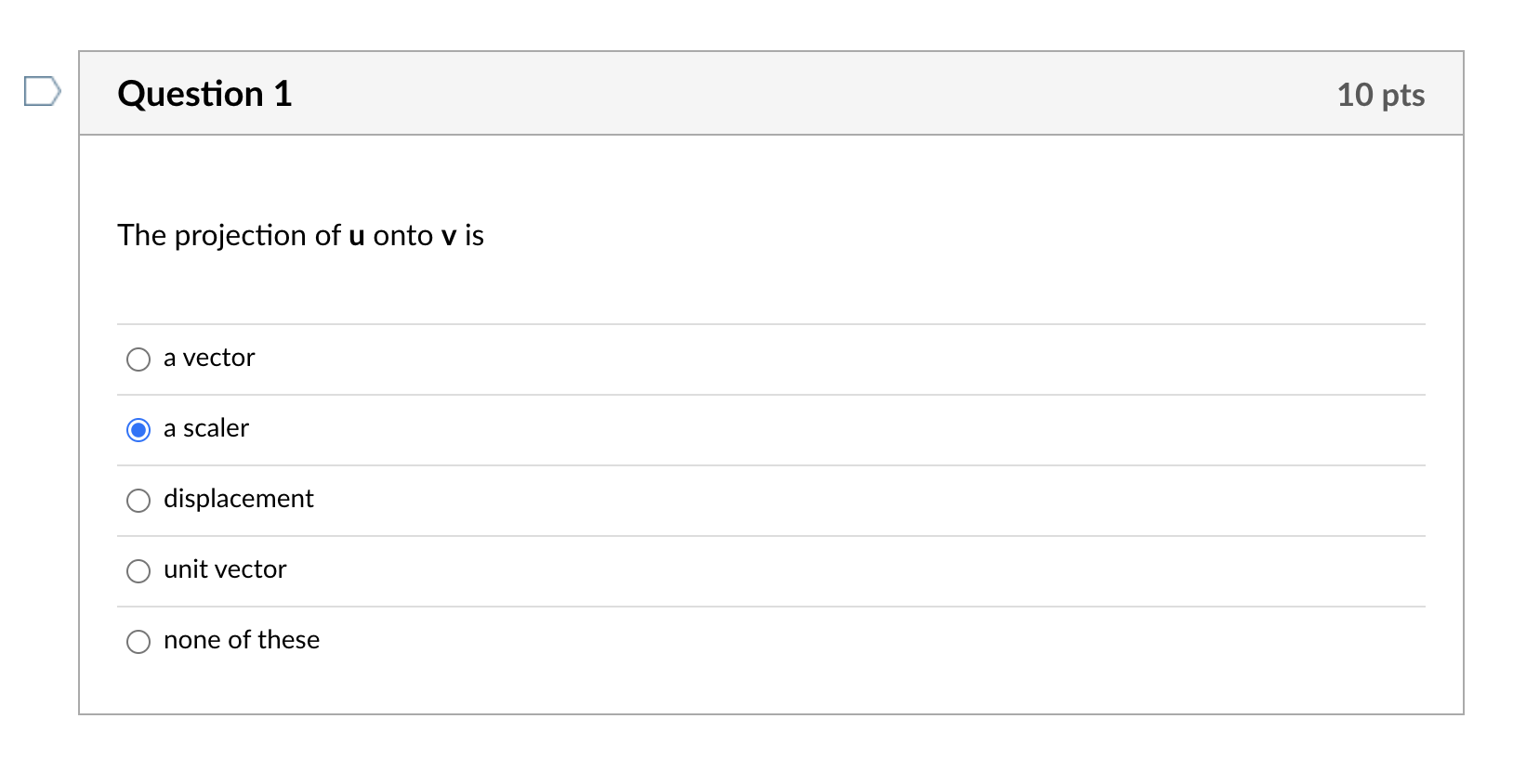 Solved Question 1 10 pts The projection of u onto v is a Chegg com