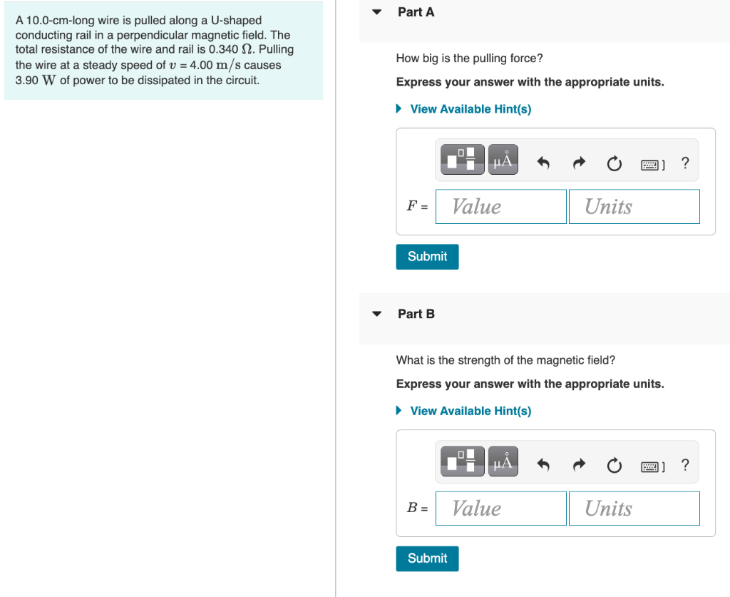 Solved A 10 0 cm long wire is pulled along a U shaped Chegg com