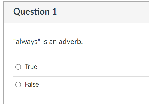 Solved Question 1 quot always quot is an adverb O True O False Chegg com