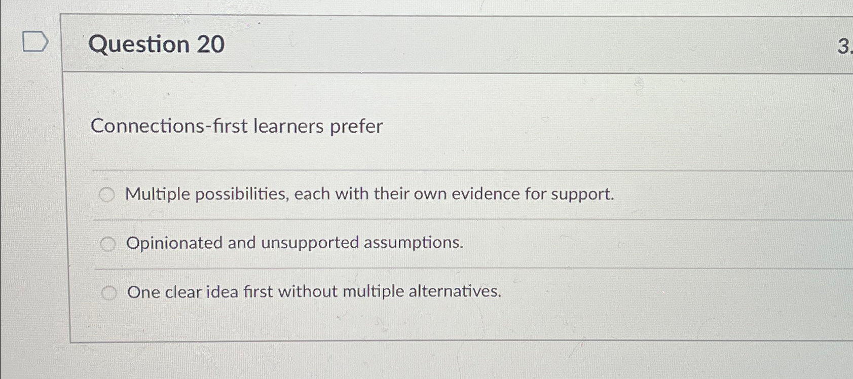 Solved Question 20Connections first learners preferMultiple Chegg com