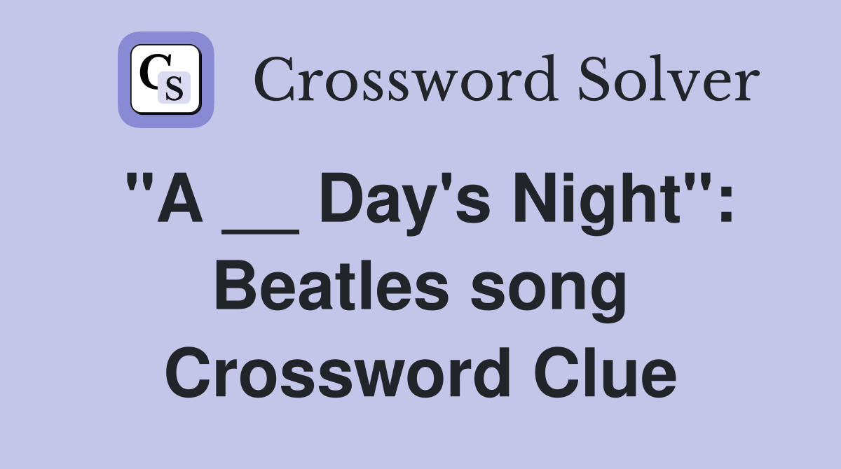 quot A Day #39 s Night quot : Beatles song Crossword Clue Answers Crossword