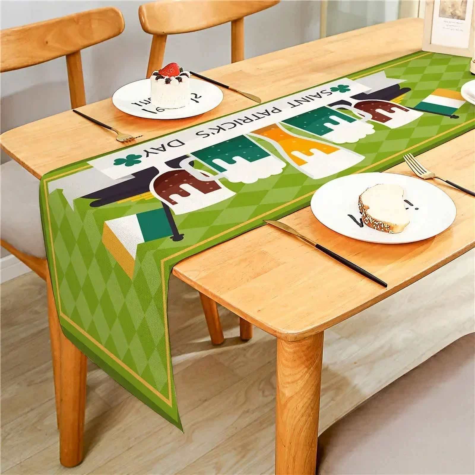 Green Cartoon St Patrick s Day Words Linen Rectangular Table Runner