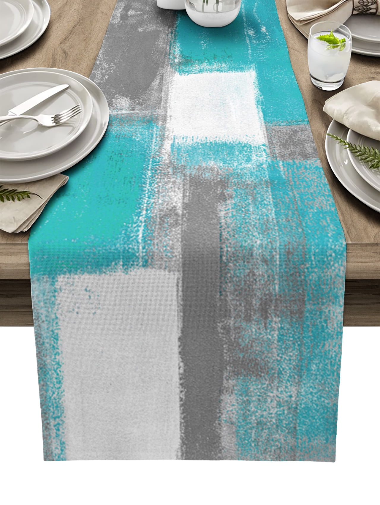 Plant Style Dahlia Oil Painting Blue Table Runner Party Tablecloth Anti