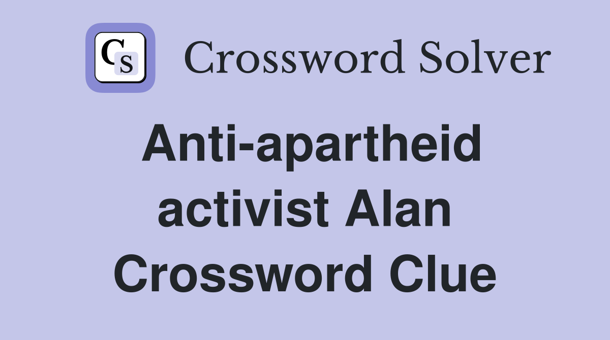 Anti apartheid activist Alan Crossword Clue Answers Crossword Solver