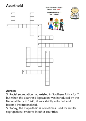 Apartheid Crossword Teaching Resources