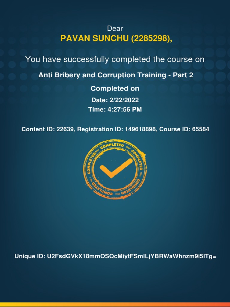K RENUKA KUMAR on LinkedIn: Anti Corruption Certificate