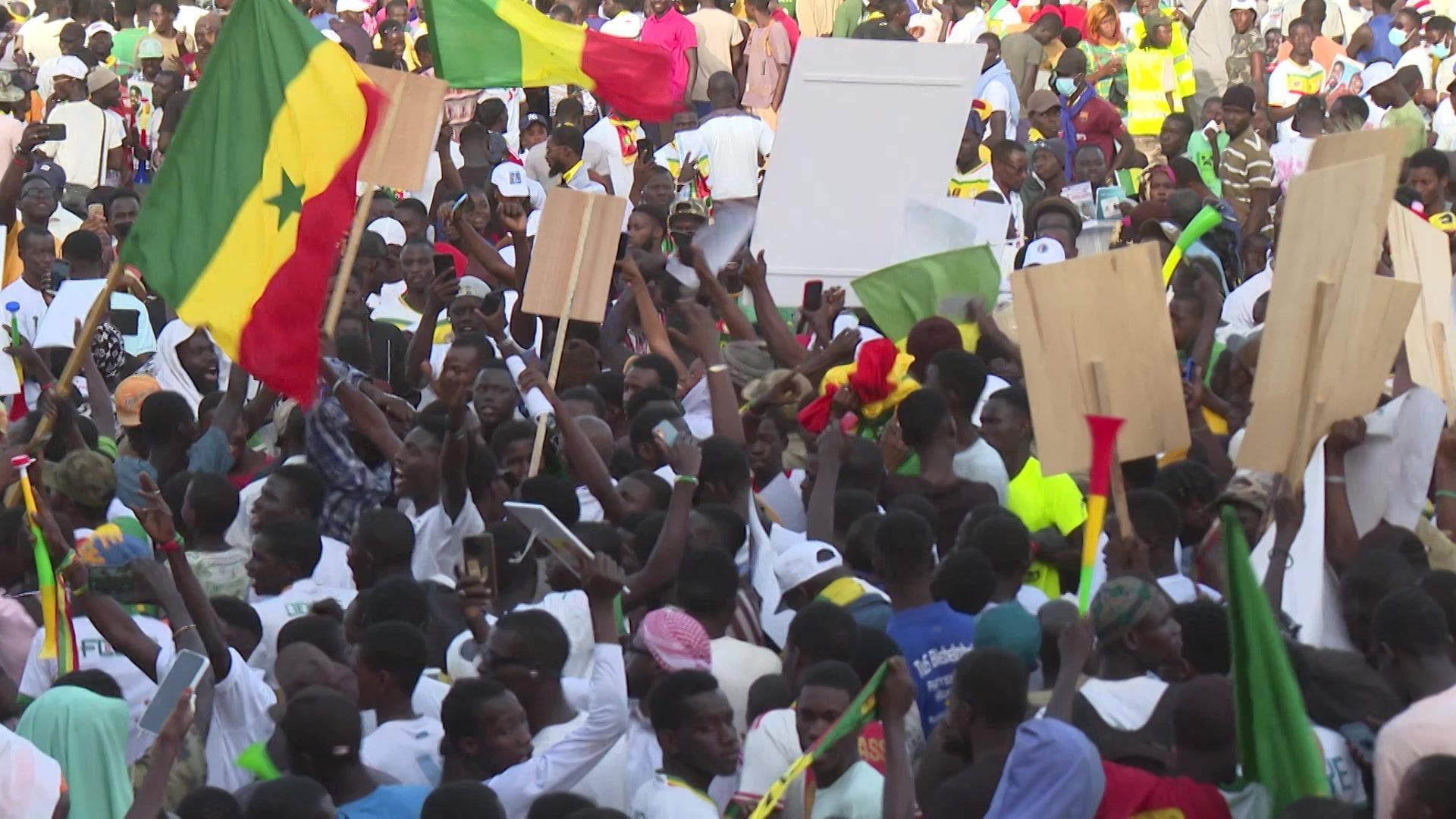 Senegalese supporters of anti establishment candidate Bassirou Diomaye