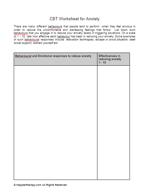 CBT Worksheet For Anxiety HappierTHERAPY Worksheets Library