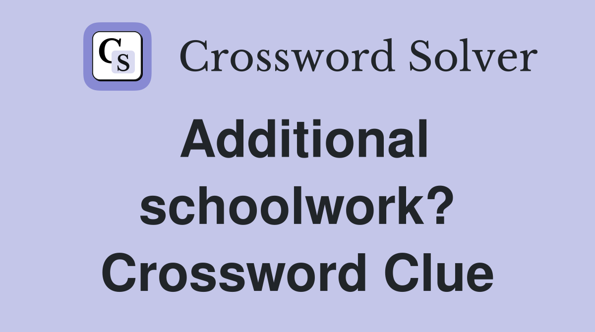 Additional schoolwork? Crossword Clue Answers Crossword Solver