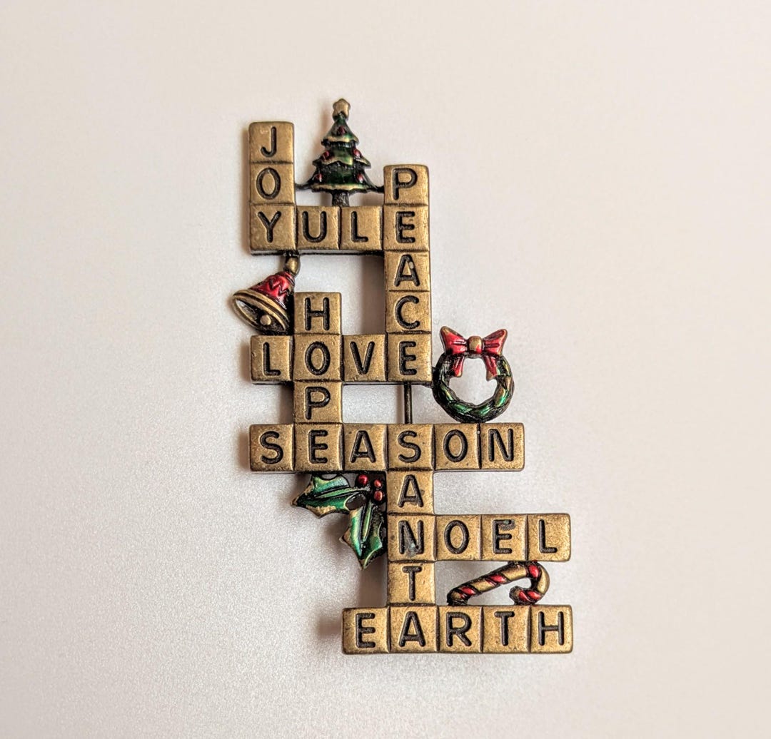 Very Rare JJ Jonette Christmas Crossword Puzzle Pin JJ Jewelry