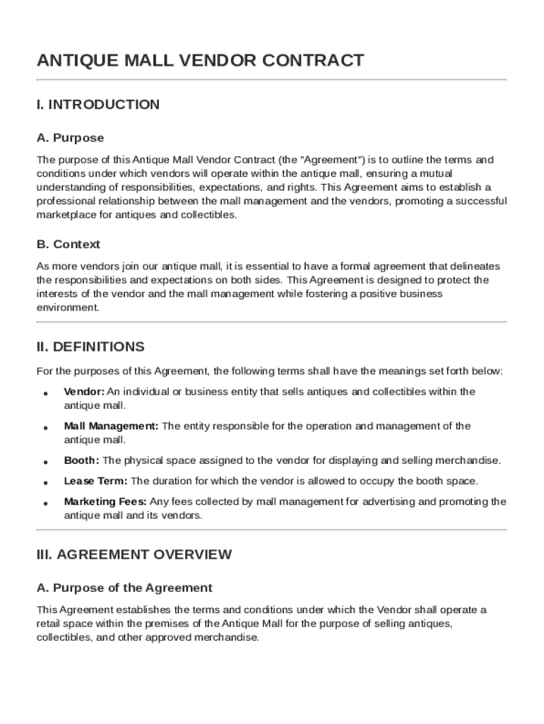 Antique Mall Vendor Contract Template: Fill out sign online DocHub