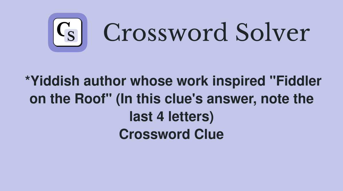 *Yiddish author whose work inspired quot Fiddler on the Roof quot (In this clue