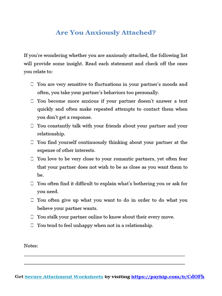Anxious Attachment Worksheets PDF Attachment Theory Feeling
