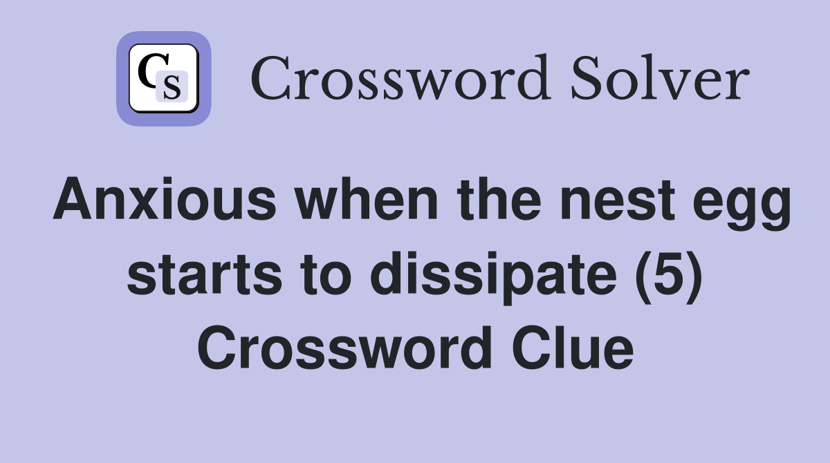 Anxious when the nest egg starts to dissipate (5) Crossword Clue