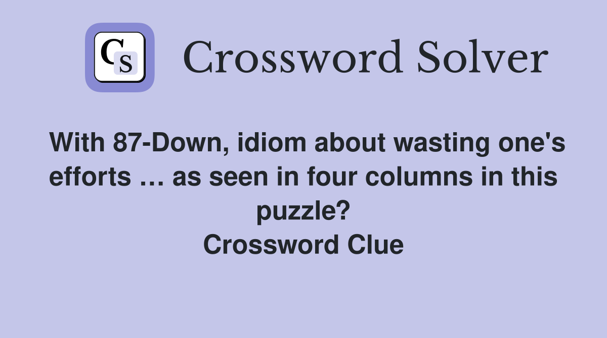 With 87 Down idiom about wasting one #39 s efforts as seen in four