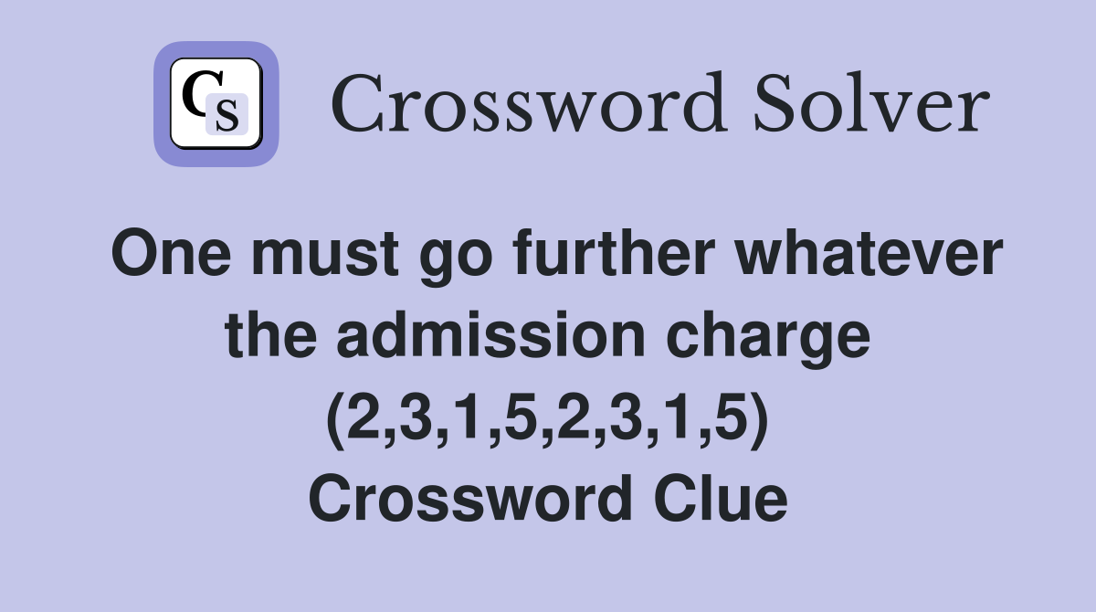 One must go further whatever the admission charge (2 3 1 5 2 3 1 5