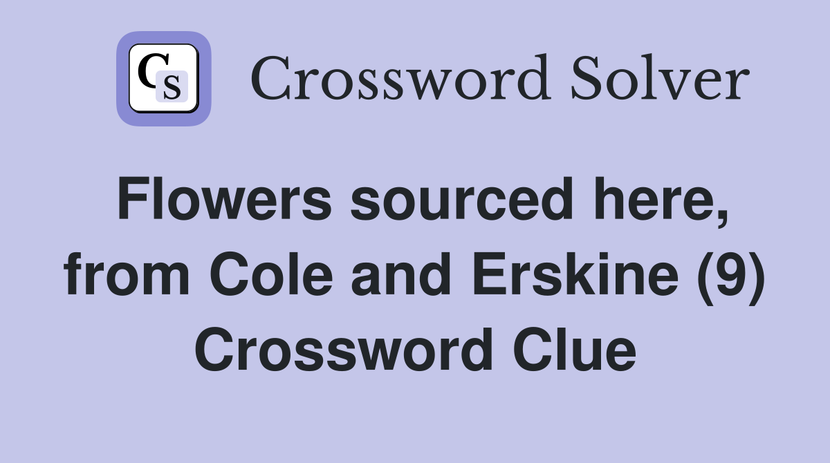 Flowers sourced here from Cole and Erskine (9) Crossword Clue