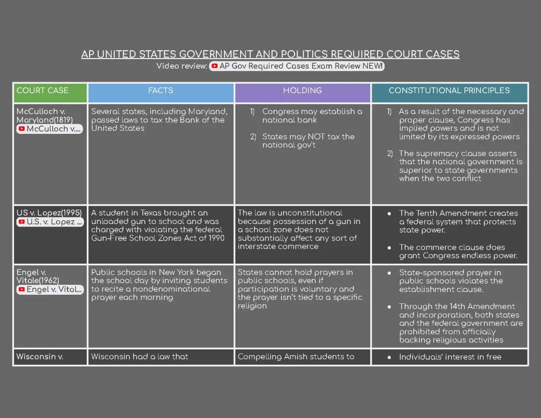 AP Govt required Supreme Court Cases AP Government and Politics