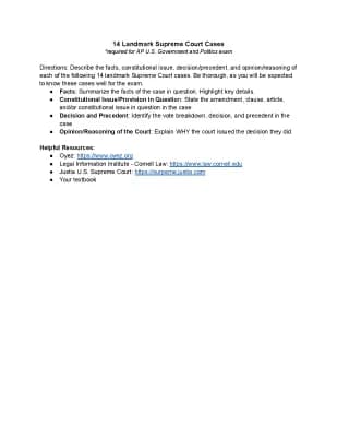 Study Guide on Supreme Court Cases for AP Gov Course Hero