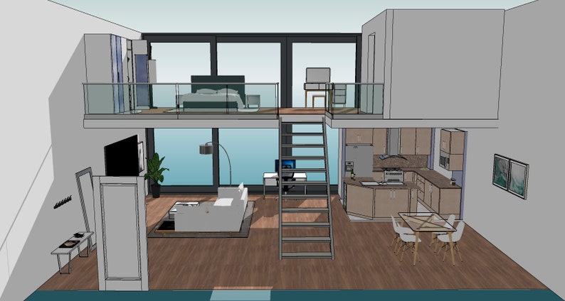 1 Bed Room 3D Loft Apartment / Sketchup / for Comic Illustrations