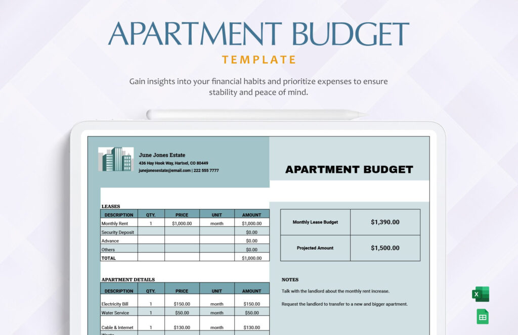 Apartment Budget Template in Excel Google Sheets Download