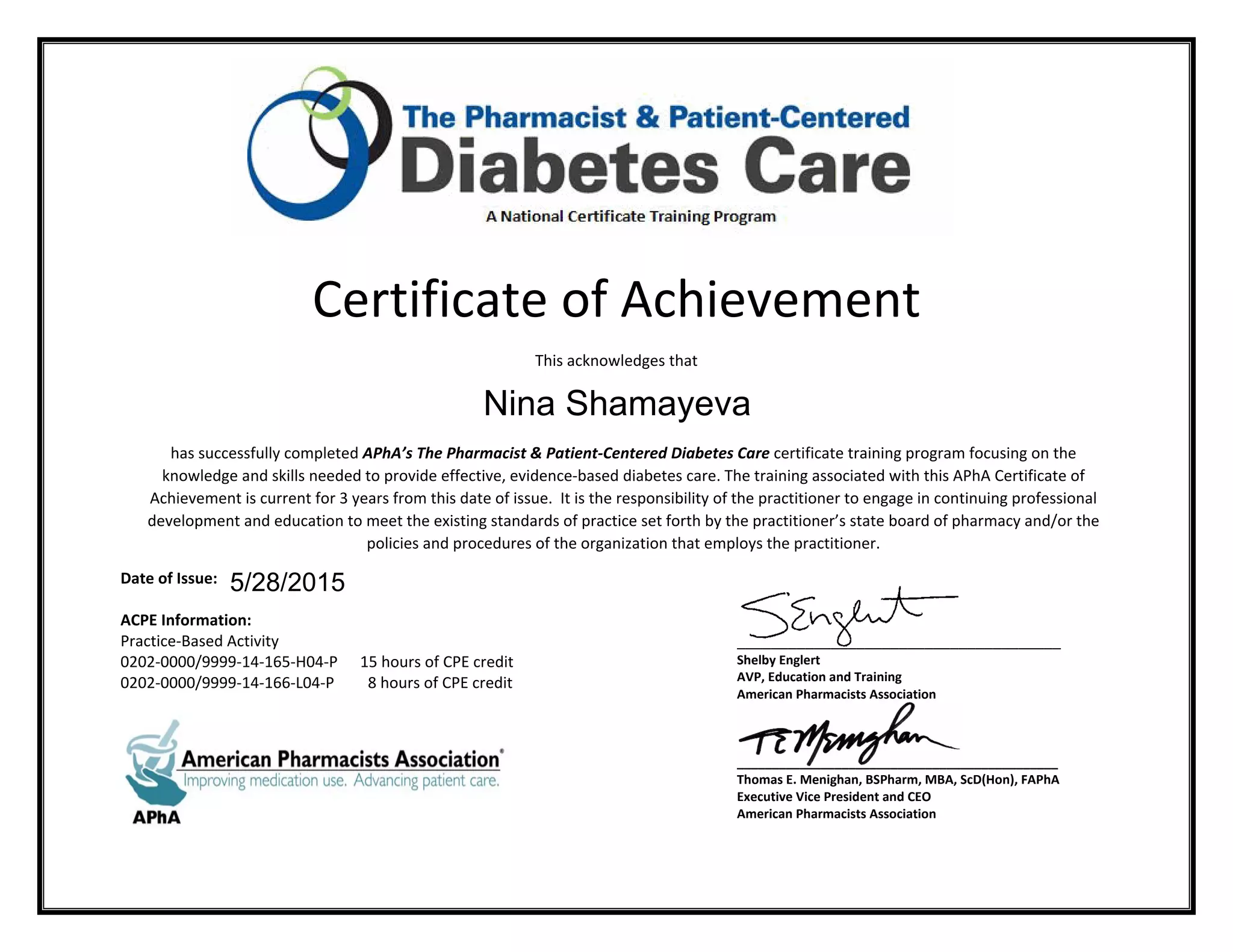 Apha Diabetes Certificate
