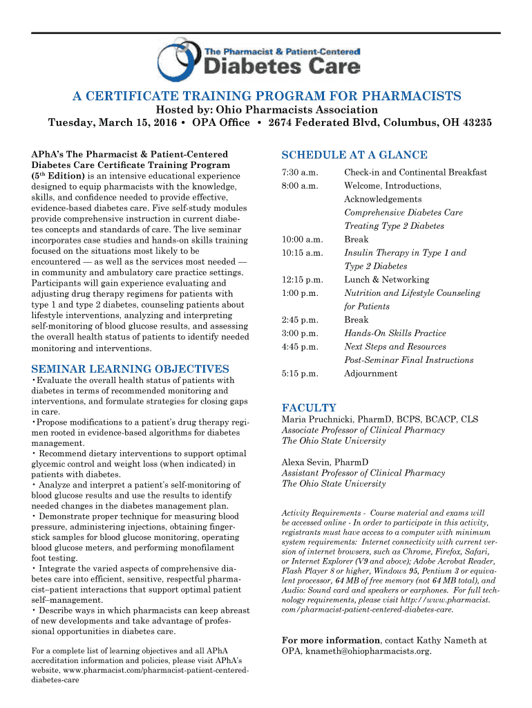 Fillable Online APhA #39 s Diabetes Certificate Program Arizona Pharmacy
