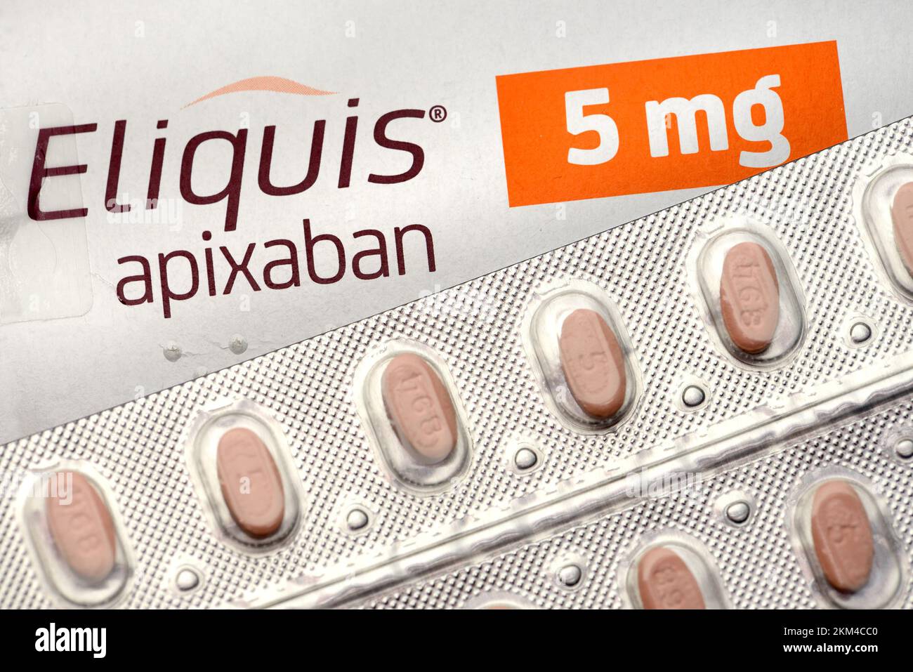 Apixaban blood thinning medicine to prevent blood clots Stock Photo