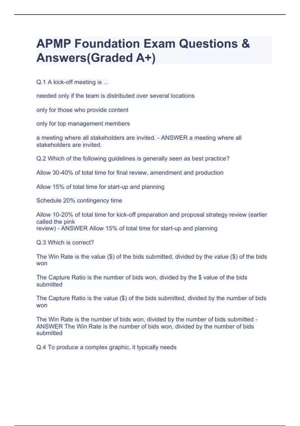 APMP Foundation Certification Exam Correct Questions Answers PACKAGE