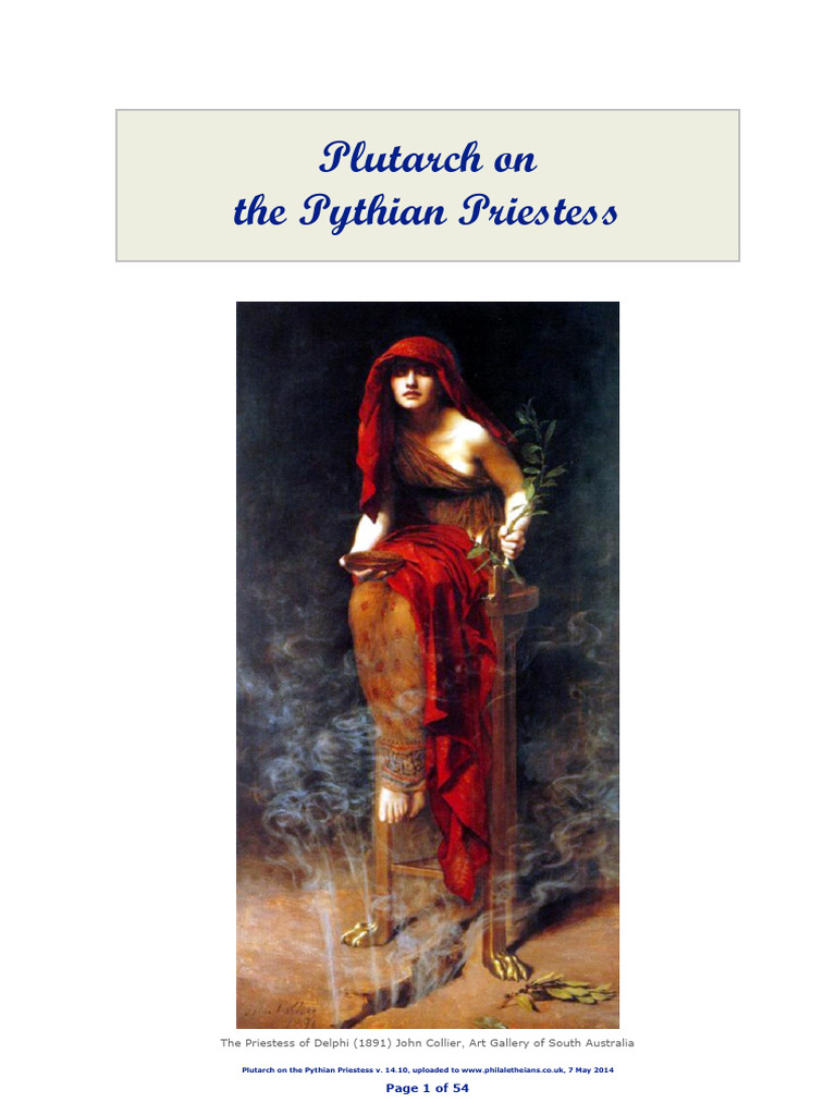 Plutarch On The Pythian Priestess PDF Apollo Oracle