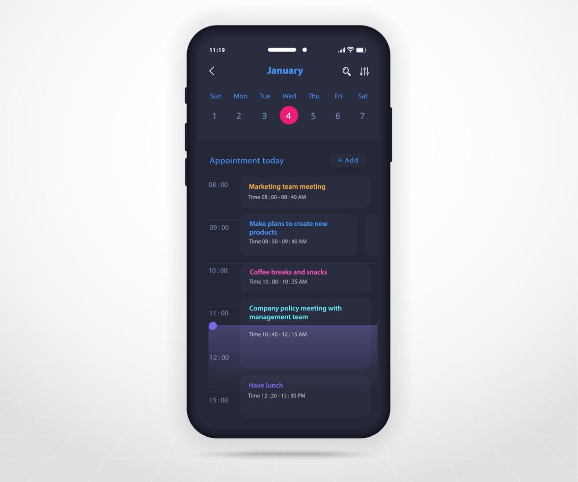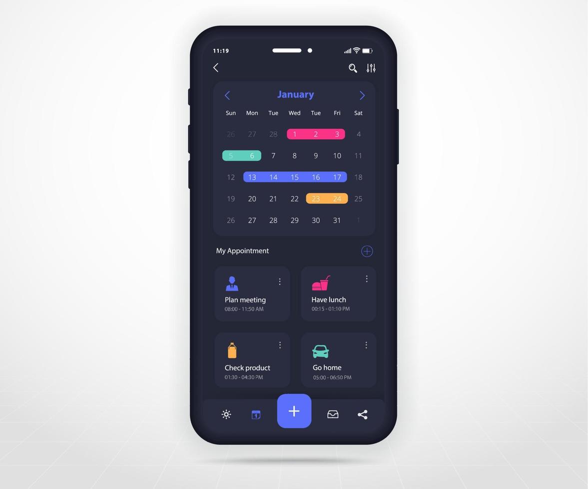 Mobile App Calendar Planner Concept Appointment Calendar Template UI