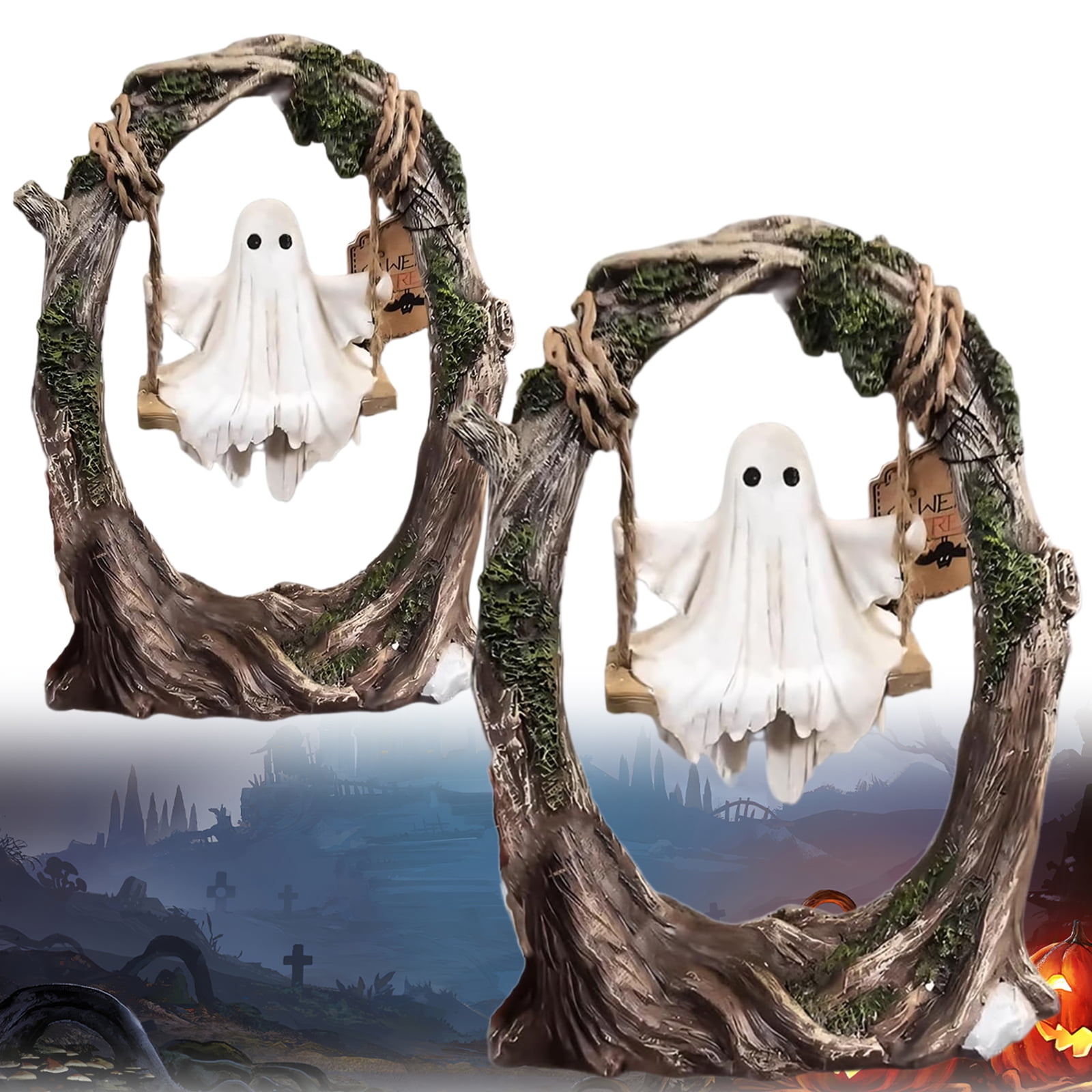2pcs Halloween Ghost Decor Swinging Shadows Ghost on a Tree Swing Cute