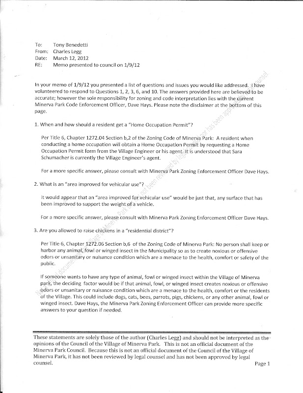 A Walk in The Park: Responses to Letter to Council via Tony Benedetti
