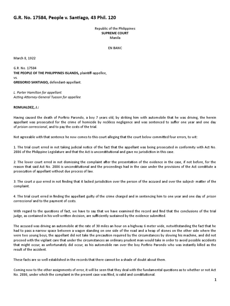 1 2 G R No 17584 People v Santiago 43 Phil 120 PDF U S State