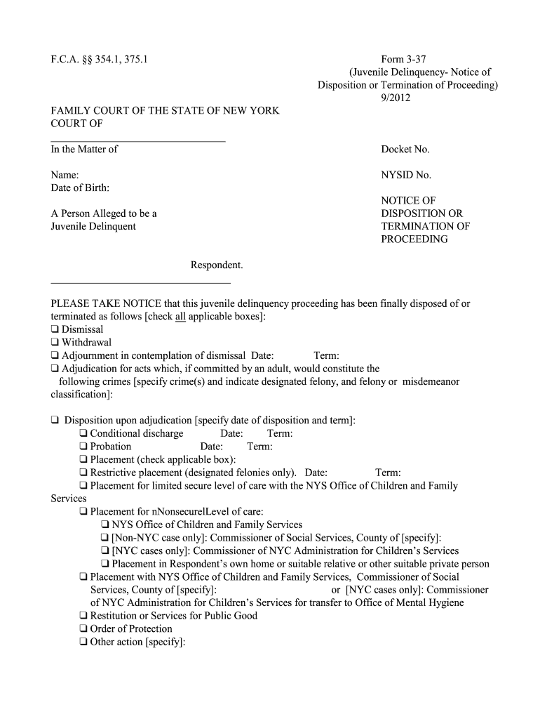 F C A 354 1 375 1 Form 3 37 (Juvenile Delinquency Notice of