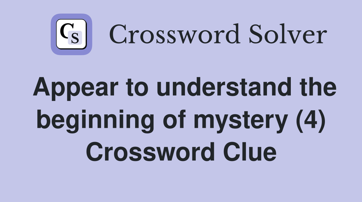 Appear to understand the beginning of mystery (4) Crossword Clue