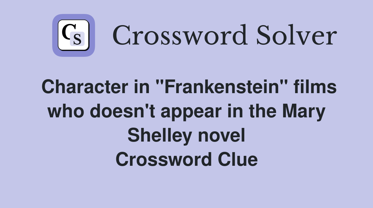 Character in quot Frankenstein quot films who doesn #39 t appear in the Mary