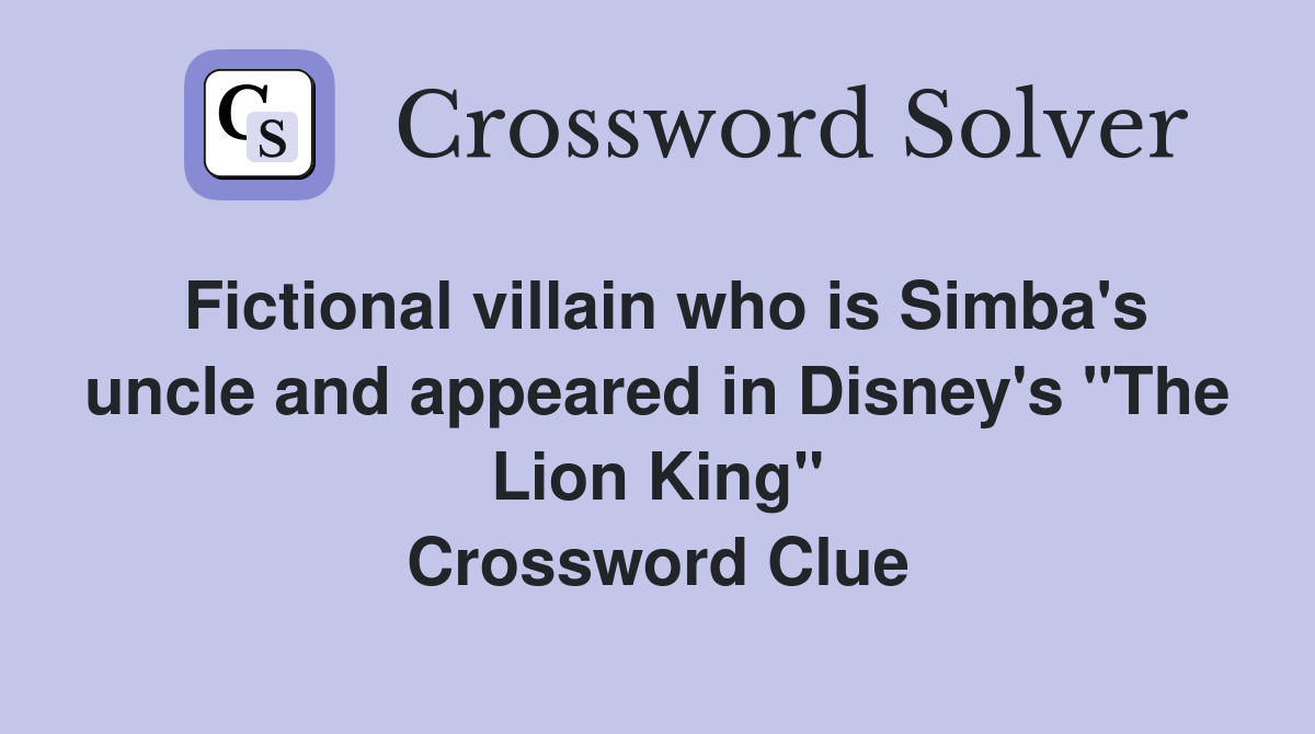 Fictional villain who is Simba #39 s uncle and appeared in Disney #39 s quot The